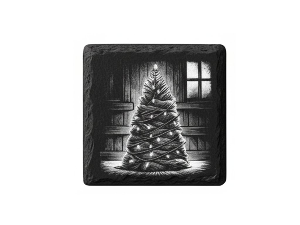 Vneste do svého domova esenci Vánoc s čistou a elegantní dekorací. Tento luxusní podtácek z pravé přírodní břidlice nese precizní laserové gravírování motivu ozdobeného vánočního stromečku. Je to dokonale vkusný a nadčasový kousek, který zachytí hřejivou atmosféru svátků a dokonale ochrání váš stůl.