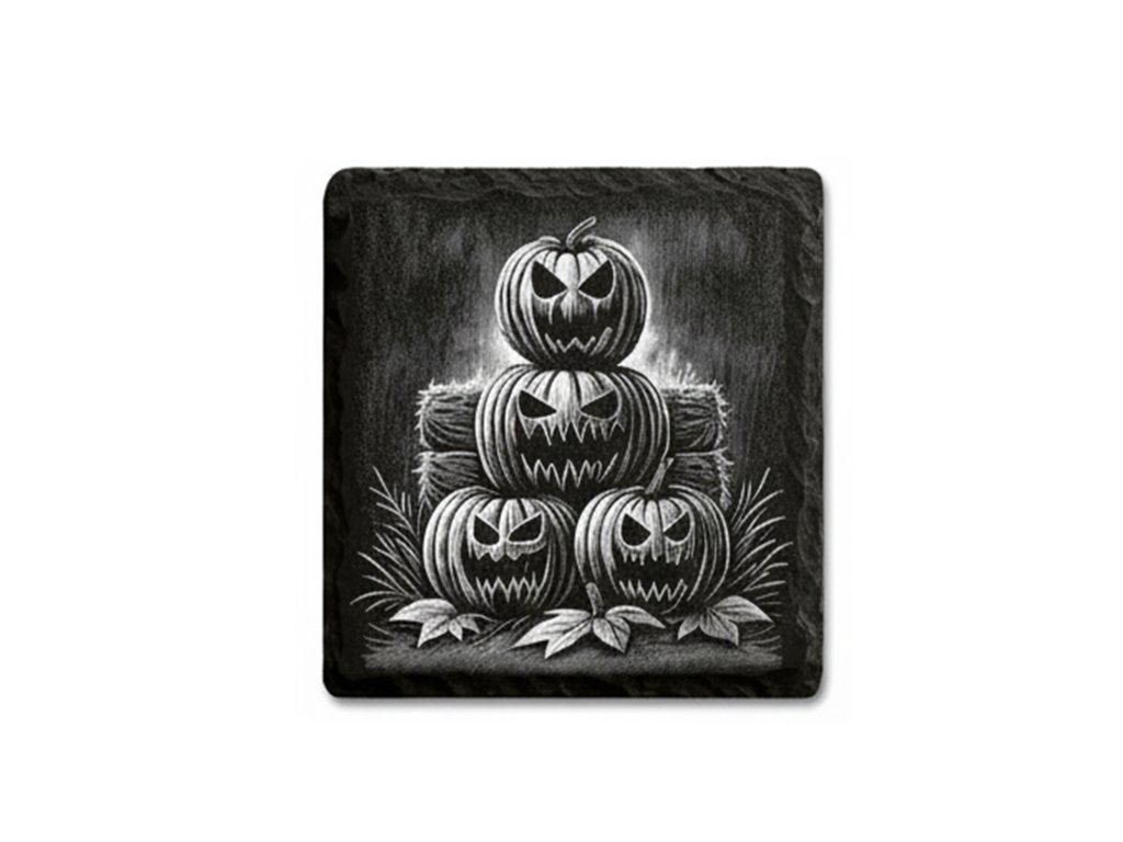 Oživte svůj stůl klasickou halloweenskou atmosférou a elegantním stylem! Tento luxusní podtácek z pravé přírodní břidlice nese precizní laserové gravírování motivu čtyř vyřezaných dýní. Je to vkusný a nepostradatelný kousek, který podtrhne podzimní a strašidelnou náladu u každého vašeho nápoje.