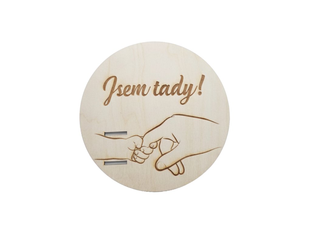 Uchovejte si nejemotivnější a nejvzácnější vzpomínku na příchod Vašeho miminka na svět! Náš dřevěný kruh s hřejivým nápisem "Jsem tady" je navržen speciálně pro to, aby se stal originálním a vkusným rámečkem pro náramek z porodnice. Už žádné ztracené náramky – tento kruh je promění v trvalou a hřejivou dekoraci pro dětský pokoj.