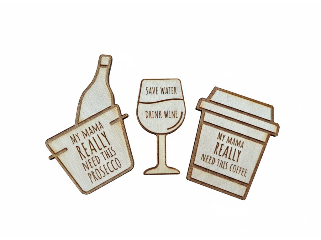Dejte mamince najevo, že rozumíte jejímu dennímu režimu! Tato sada tří humorných magnetek z březové překližky je perfektní, vtipný dárek, který s nadsázkou vystihuje, co maminky skutečně potřebují k přežití. Ideální na lednici nebo magnetickou nástěnku, kde vždy rozesmějí.