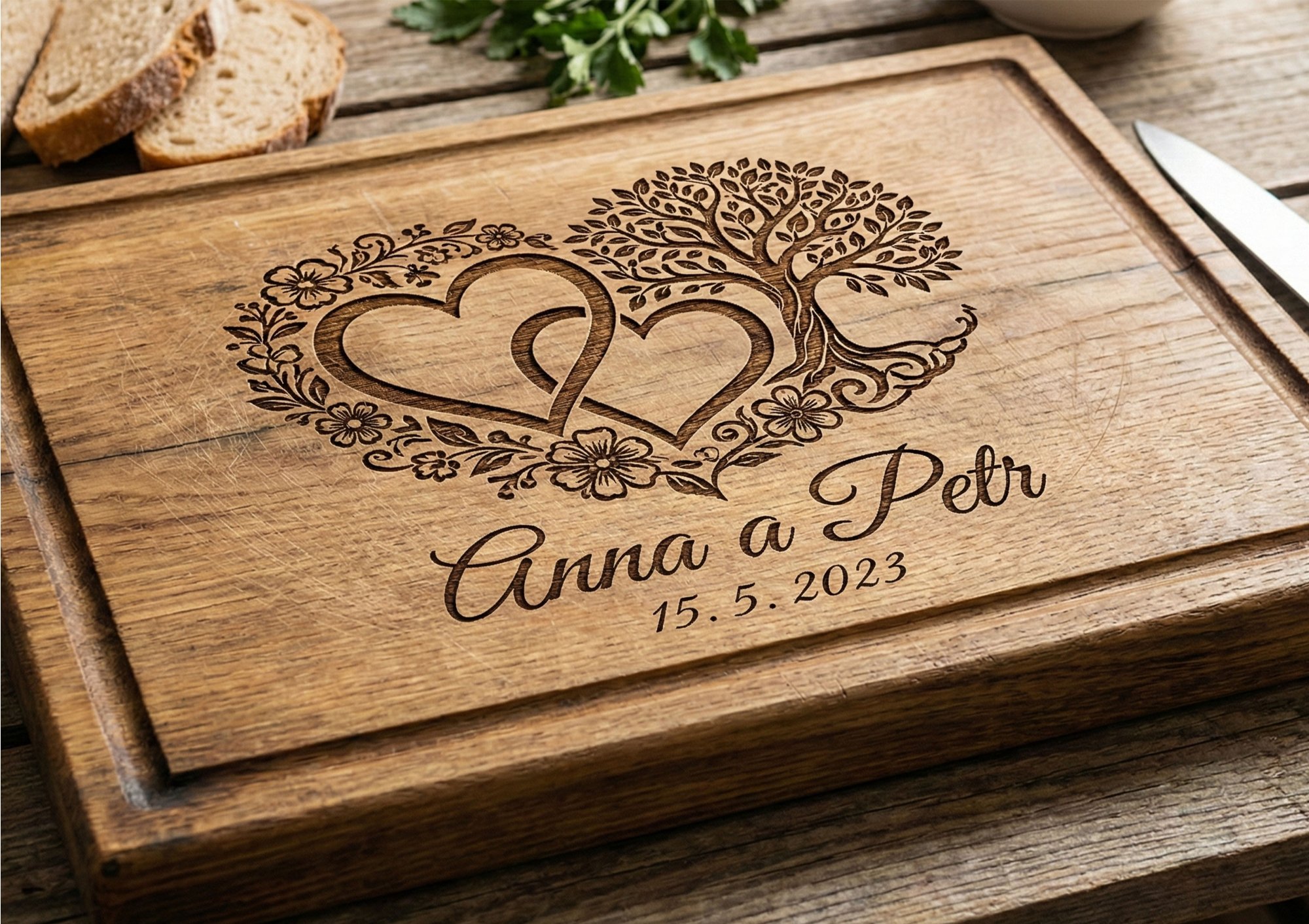 Svatby a výročí: Spojení dvou jmen a jednoho data do dřeva je symbolické "zpečetění" svazku.