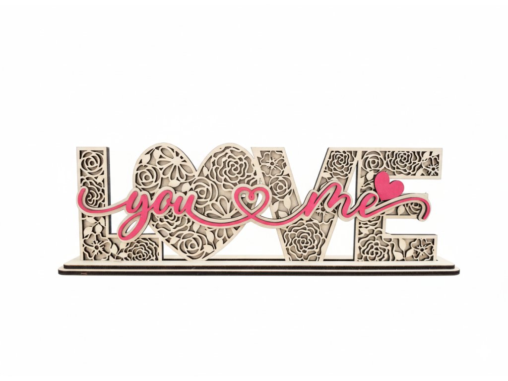 Symbolika propojení: Nápis krásně propojuje slovo „LOVE“ s osobním dovětkem „you ♥ me“ (ty a já). Je to moderní a hravé vyjádření vzájemné náklonnosti.