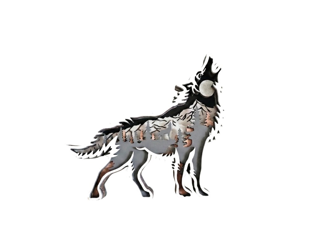 Dokonalá hra barev a stínů: Tajemství tohoto vlka tkví v poctivé ruční práci. Každá ze 6 vrstev má svůj odstín, což po slepení vytváří neuvěřitelný 3D efekt. Vlk vypadá živě a plasticky, jako by vystupoval ze stínu lesa.