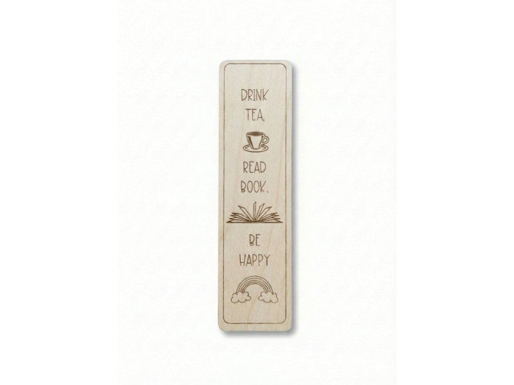 Potřebujete malou připomínku, jak si nejlépe užít chvíle odpočinku? Naše dřevěná záložka je ideálním společníkem pro Vaše relaxační rituály. Vyrobená z hladké březové překližky, je krásně tenká a lehká. Zdobí ji laserem gravírovaný motivační nápis, který shrnuje dokonalou pohodu: „Drink tea, read book, be happy“ (Pij čaj, čti knihu, buď šťastný).